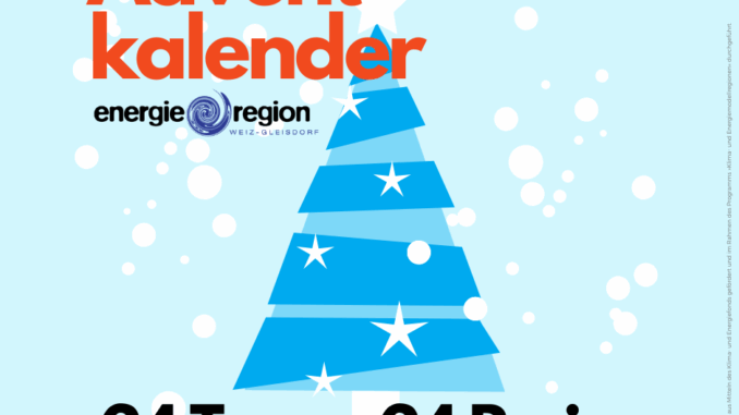 Auch dieses Jahr gibt es den allseits beliebten Adventkalenderder Energieregion Weiz-Gleisdorf. Wie bisher kann man auch 2025 von 1. bis 24. Dezember jeden Tag einen großartigen regionalen Preis gewinnen. Mitmachen lohnt sich auf jeden Fall!